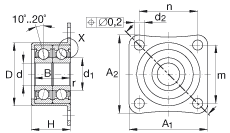![]() ![]() ![]() ![]() ![]() ![]() ![]() ![]() ![]() ![]() ![]() ![]() ![]() ![]() ![]() ![]() | Type: INA Bearings for screw drives d 10 Tolerance: -0,008 D 28,14 Tolerance: +0,03 / -0,01 H 17,5 Tolerance: -0,5 A1 35 A2 35 B 16 Tolerance: +0,25 Daa min 26 Dai 22 d1 14,7 d2 4,5 da 12,4 m 26 n 26 rmin 0,3 X Axial abutment area of outer ring m 50 Mass Cr 7400 Basic dynamic load rating, radial C0r 3600 Basic static load rating, radial Ca 2550 Basic dynamic load rating, axial C0a 2420 Basic static load rating, axial nG Fett 5100 Limiting speed for grease lubrication MRL 0,12 Bearing frictional torque caL 26 Axial rigidity Statistically determined mean values from measurements on the complete bearing. Mm 0,0075 Mass moment of inertia for rotating inner rings 7 7 Axial runout The axial runout data for screw drive bearing arrangements are based on the rotating inner ring. ZM10 ZM10 Designation of recommended INA locknut The locknut is used to axially locate the bearing unit. It has no influence on the bearing preload. Locknuts must be ordered separately. MA 6 Tightening torque Only valid in conjunction with INA precision locknuts 4 x M4 4 x M4 Quantity x size of fixing screws to DIN 912 Tightening torque of fixing screws according to manufacturers data. Screws not included in delivery. |
